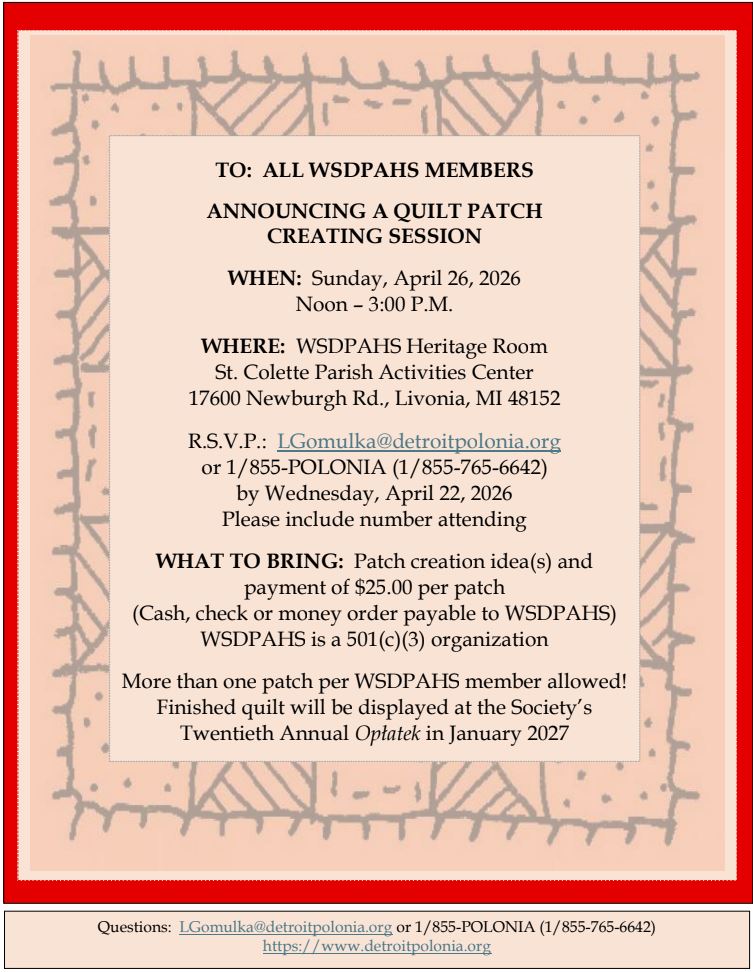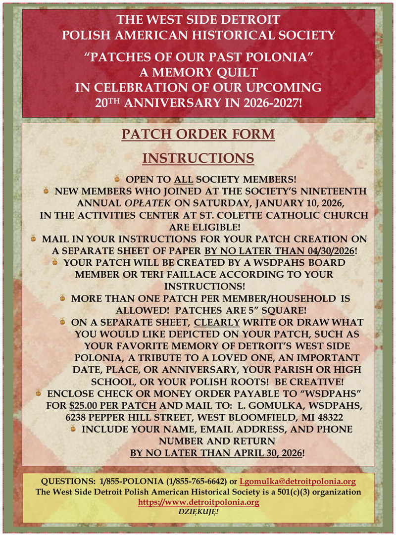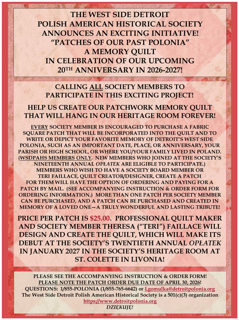We invite you to become a member of The West Side Detroit Polish American Historical Society.