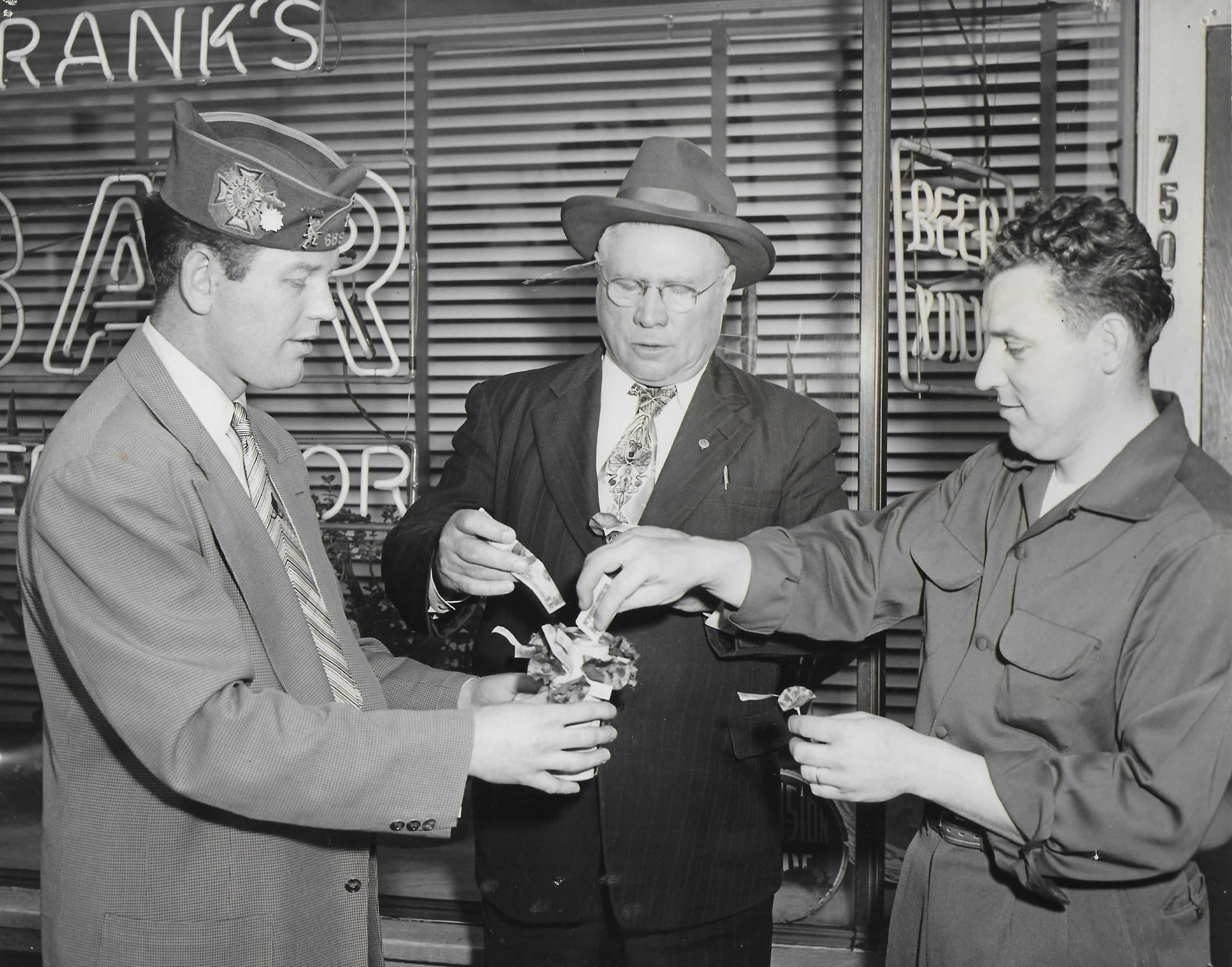 - Frank B. Michno, owner of Frank’s Bar at 7505 Michigan Avenue between 51st and 52nd Streets in Southwest Detroit, supporting the Sgt. Stanley F. Romanowski Post No. 6896 at 4300 Lonyo, south of Michigan Avenue, during one of their annual Memorial Day or Labor Day fundraising events, ca. 1949.